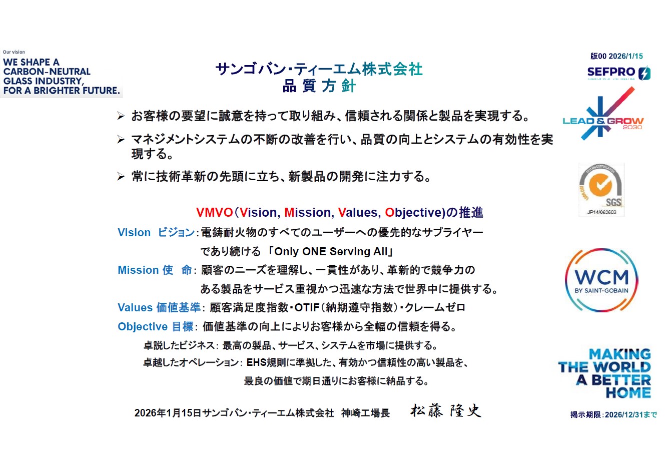 神崎工場 神崎工場 1966年より東京工場(東京都江東区)で生産を開始した電鋳耐火物の事業拡大に伴い、1972年10月に現在の千葉県香取郡神崎町へ移転致しました。神崎工場は当社の単一工場として成り立ち、電鋳耐火物の製造設備や当社技術の中枢を担う技術センターも有しております。また、2006年には労働安全衛生マネジメントシステム(OSHMS)の認証取得を受けております。サンゴバン・ティーエム株式会社 神崎工場環境方針 神崎工場労働安全衛生方針 神崎工場品質方針